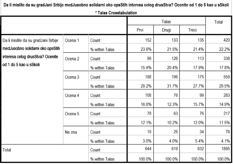 У време уставног референдума 2006. у неколико таласа је проверено колико грађани мисле да смо сви ми солидарни око општег интереса целог друштва и резултати су били следећи:
