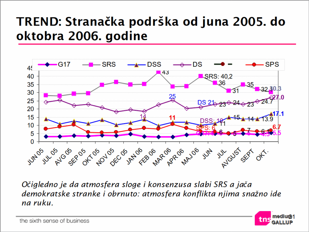 Без било какве спекулације, јасно је да језгро друштва није чинила заједница (није било ни никаквог националног договора елита у транзицији, сасвим супротно), да људи то тако нису онда доживљавали (у најбољем случају око 25%), док већина то уопште није препознавала у друштву и институцијоналним праксама (друштвеној структури) и институционалној и медијској комуникацији. Ништа мање то није био задатак ни субвенционисане културе, која је форсирала конзумерски атомизам и приде заједничку – националну кривицу. Тако да је одсуство реакције на историјску и транзициону катастрофу 2008. било за очекивање, а онда и колапс од 2012. до данас. У то време – 2006. док је још постојао некакав политички систем, било је све видније да се делимо на 3. Осе, од којих је народњачка све слабија (ДСС), док друге две заоштравају свој профил као „југоусташка“ и „лумпеншка“ у тежњи да се што више приближе ЕУ и подрже своје интересе. Тако да овде можда изгледа да није могућ „црногорски модел промене власти“, али итекако је могућа изградња Монтенегринског менталитета (некаквог „политичког народа“ или како они воле рећи „државног народа“) а пуко безисторијске конзумерске масе која планира да се утопи и нестане у ЕУ 2028. као некадашњи српски народ који је изгубио самог себе (и поред литија). Исто тако постоји тенденција за некакав опште „политички народ“ и у Србији, који треба да одмени српски народ колико већ у следећим изборима против партије лумпена (некакав безконфликтни „политички народ“ ма ко да му радио о глави и држави). На томе већ дуго раде многи важни центри моћи, не само страни са својом мрежом плаћених колонијалних агената него и они трајући домаћи (од 1945. са финално несумљивим југоусташким опредељењем, што их и данас одређује) у садејству са Н1 медијским кластером. Уосталом 2006, док је било политичког система 3. Осе су саме сасвим очигледне иако се не наслућује само њихово значење по српску политику (стратегије борбе за опстанак и постојање српског народа и државе), премда се потпуно интересно у међувремену ДС расуо по својој оси као јединствена организација, а ДСС истопио у својој немогућности да изнесе националну и демократску политику због пре свега спољних препрека и не много мањих унутарњих (прекратког периода поновне националне орјентације историјеii), али данас су све до једне осе очите по својим дометима и циљевима и потврђују зашто више ни нема политичког система у Србији и зашто га скорије неће бити (чак ако се избори организују у догледно време):